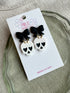 Creepy but cute! These white skull earrings with heart eyes and black bows are perfect for a girly goth vibe. Lightweight, nickel-free, and handmade—ideal for anyone who loves spooky cute Halloween jewelry.