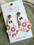 Groovy, ghoul! These retro floral ghost earrings bring 70’s vibes with a spooky twist. Handmade from polymer clay, they’re lightweight statement earrings perfect for Halloween parties, fall outfits, and spooky season lovers who crave something unique and fun.