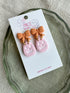 Trick-or-treat meets chic! These pink jack-o-lantern earrings with orange bows are lightweight, nickel-free, and perfect for a girly Halloween look. Handmade with polymer clay for all-day comfort. A must-have for anyone who loves pastel pumpkin earrings.