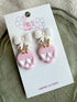 Sweet but spooky! These pink skull earrings with heart eyes and glittery white bows are the perfect mix of creepy and cute. Lightweight, nickel-free, and handmade from polymer clay.